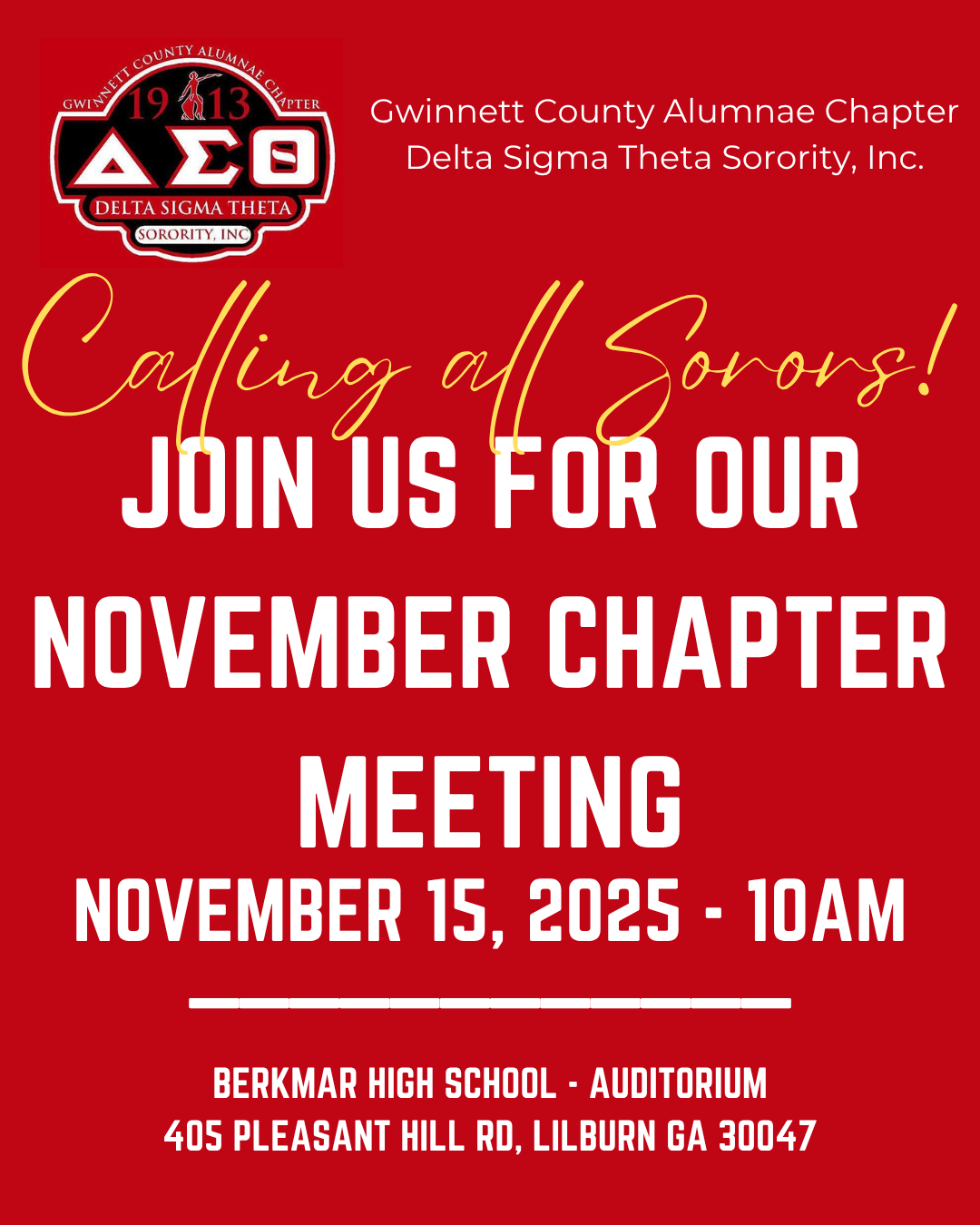 We warmly welcome all duly initiated members of Delta Sigma Theta Sorority, Inc. to attend our October Chapter Meeting, which will be held virtually.